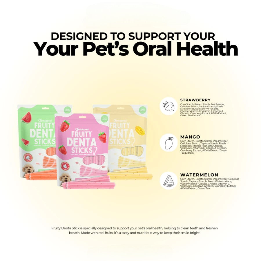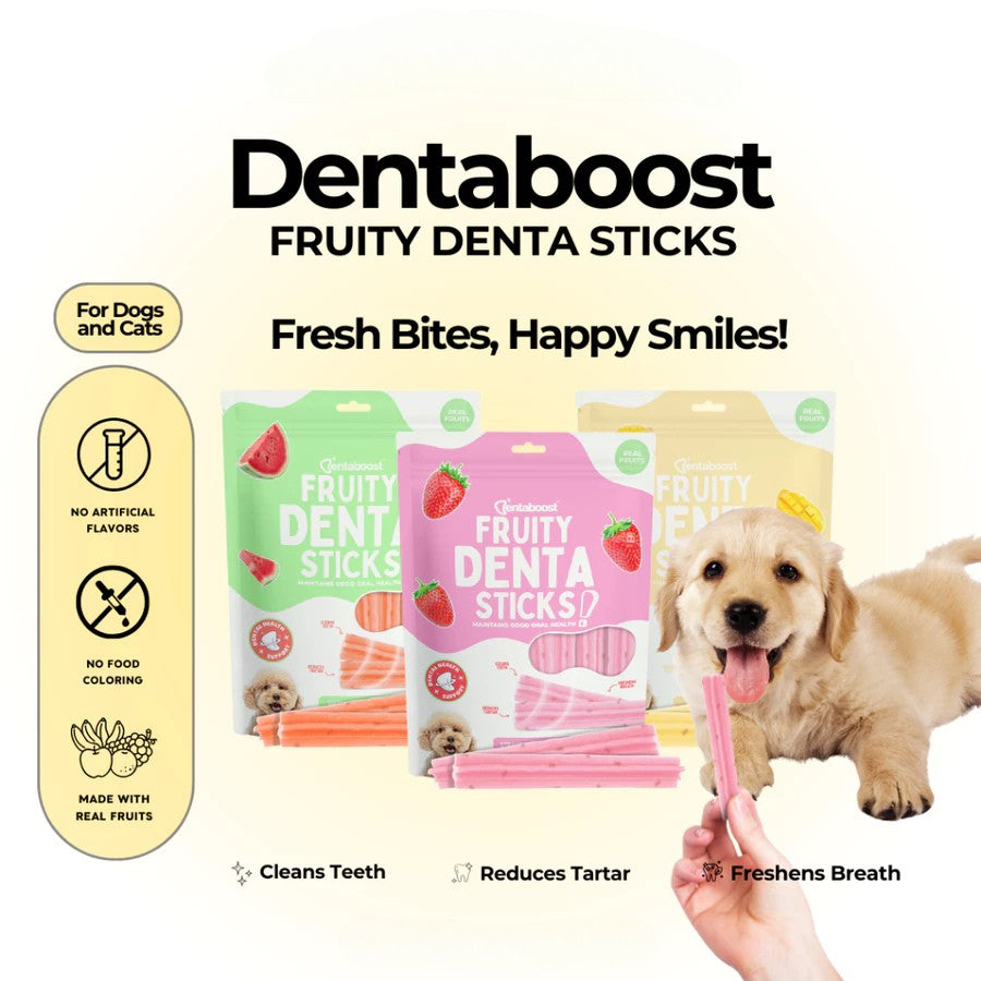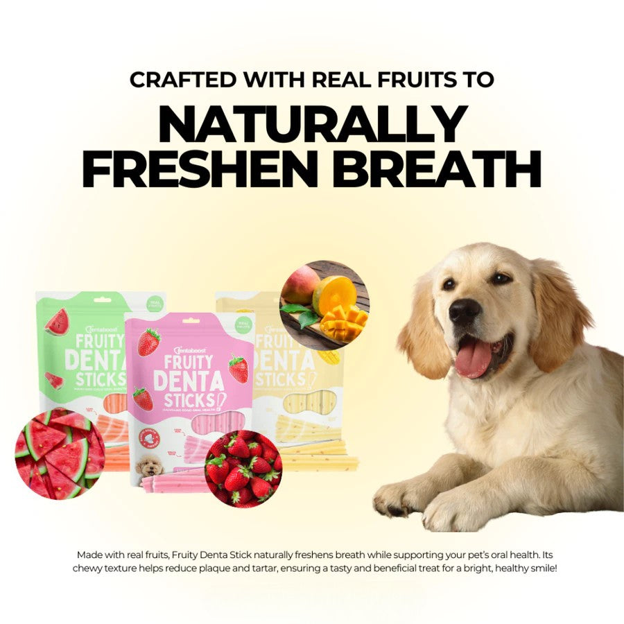 With DENTABOOST Fruity DENTA STICKS, you’re not just giving your pet a yummy snack—you’re providing them with a daily dental care solution that supports their oral and overall health in the tastiest way possible!