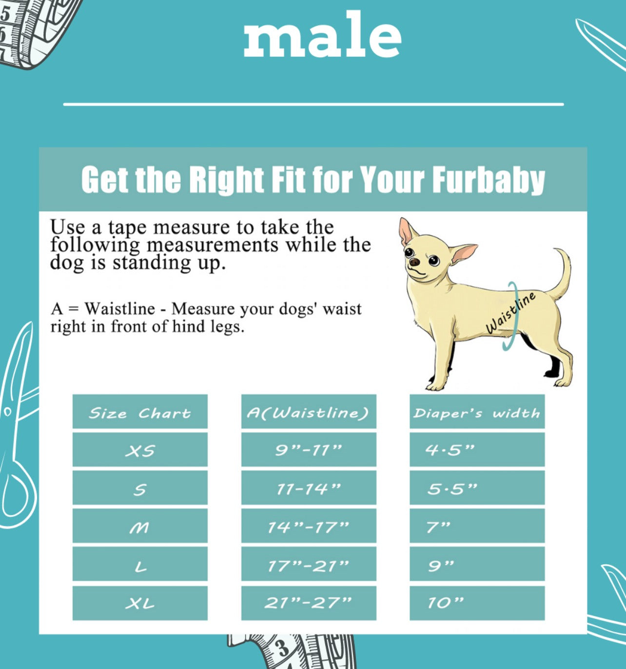 A = Waistline - Measure your dogs waist right in front of the hind legs