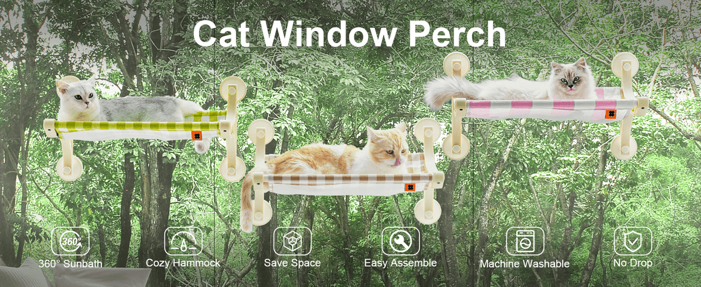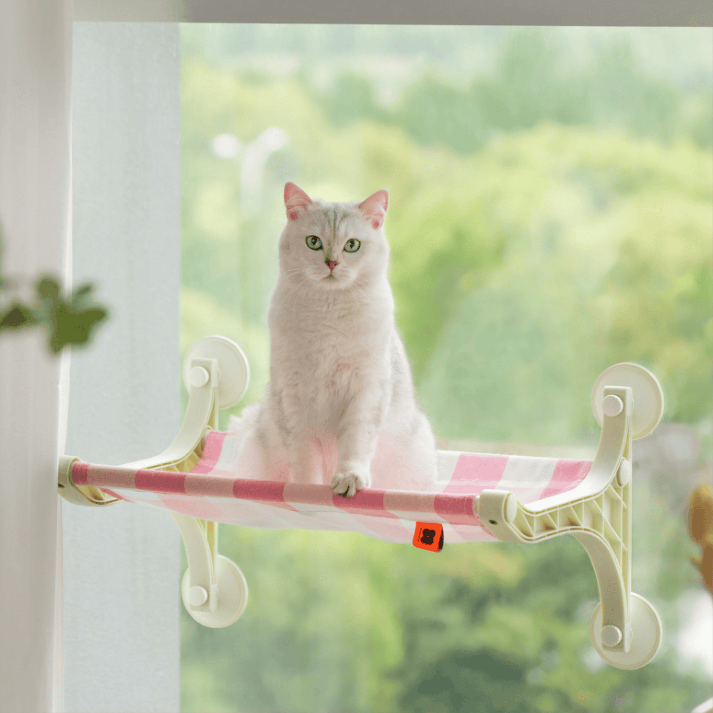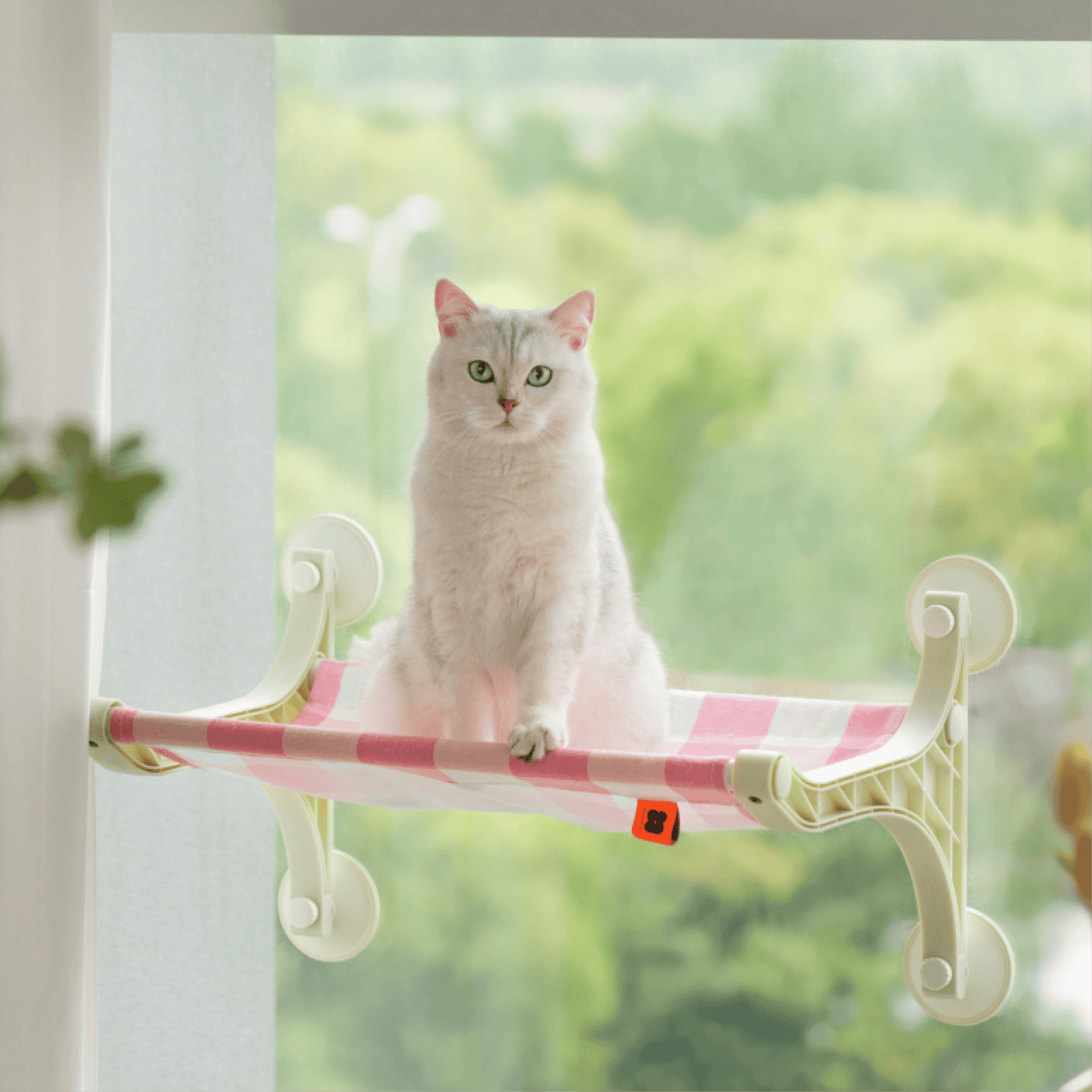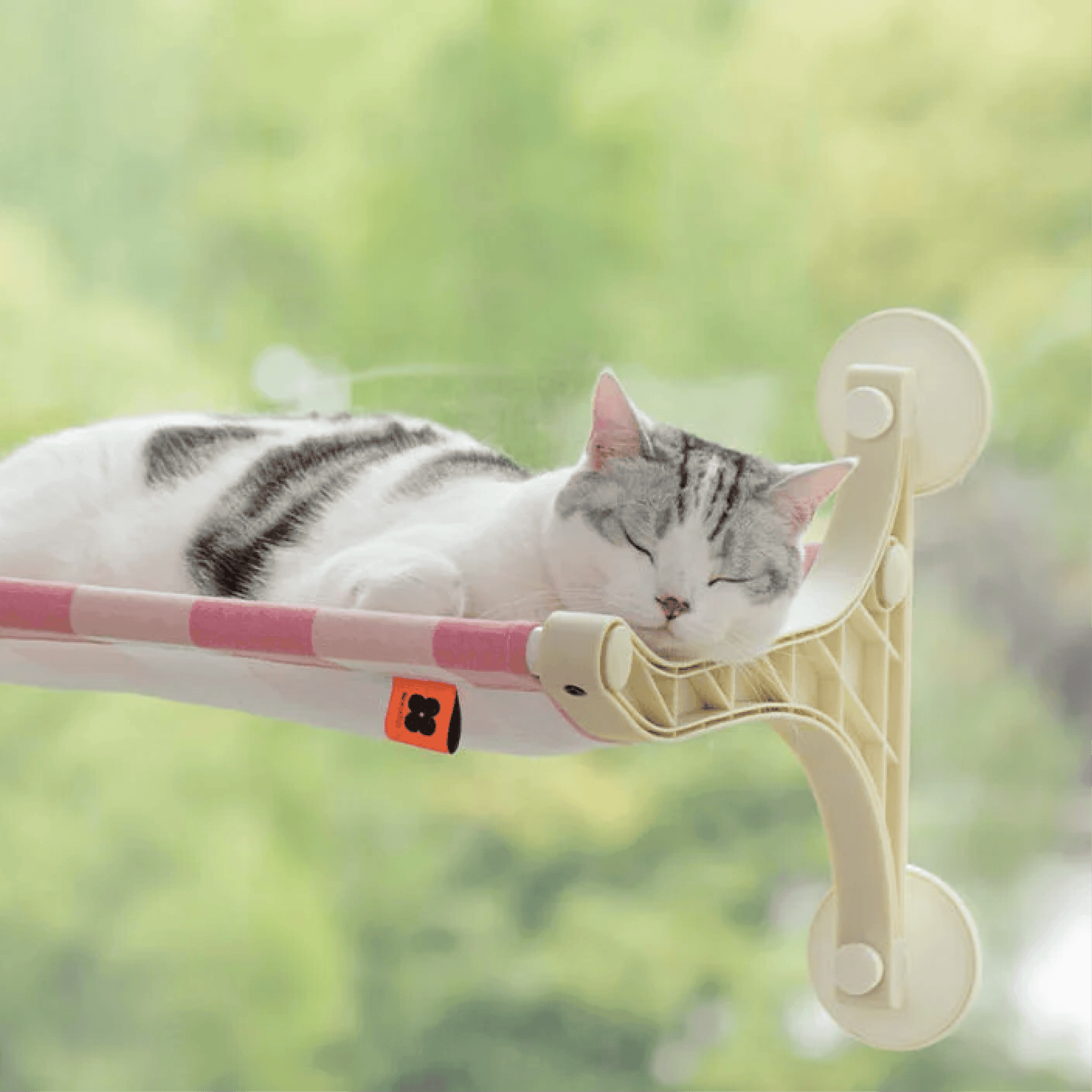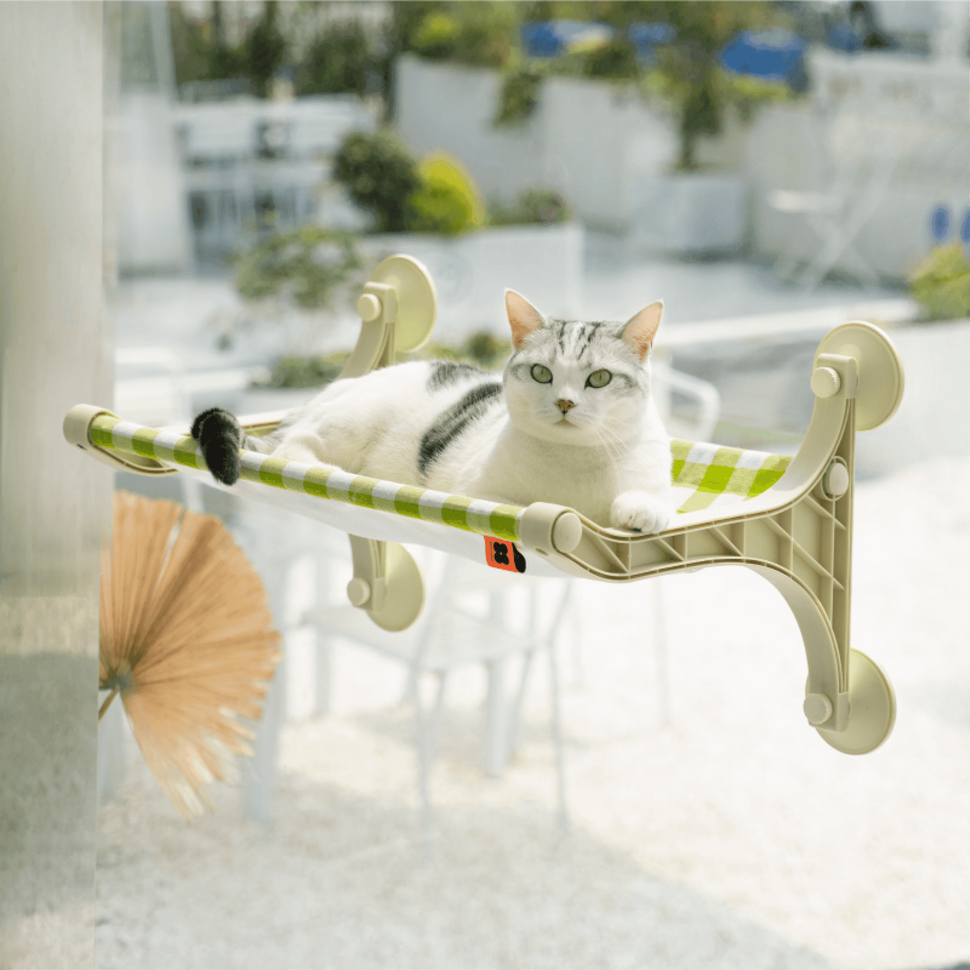 This sunbather hammock can be easily attached to smooth and hard surfaces (check product description), providing an elevated perch for your cat's relaxation and people/bird watching enjoyment. It creates a sweet and cozy vibe that your cats would surely love.