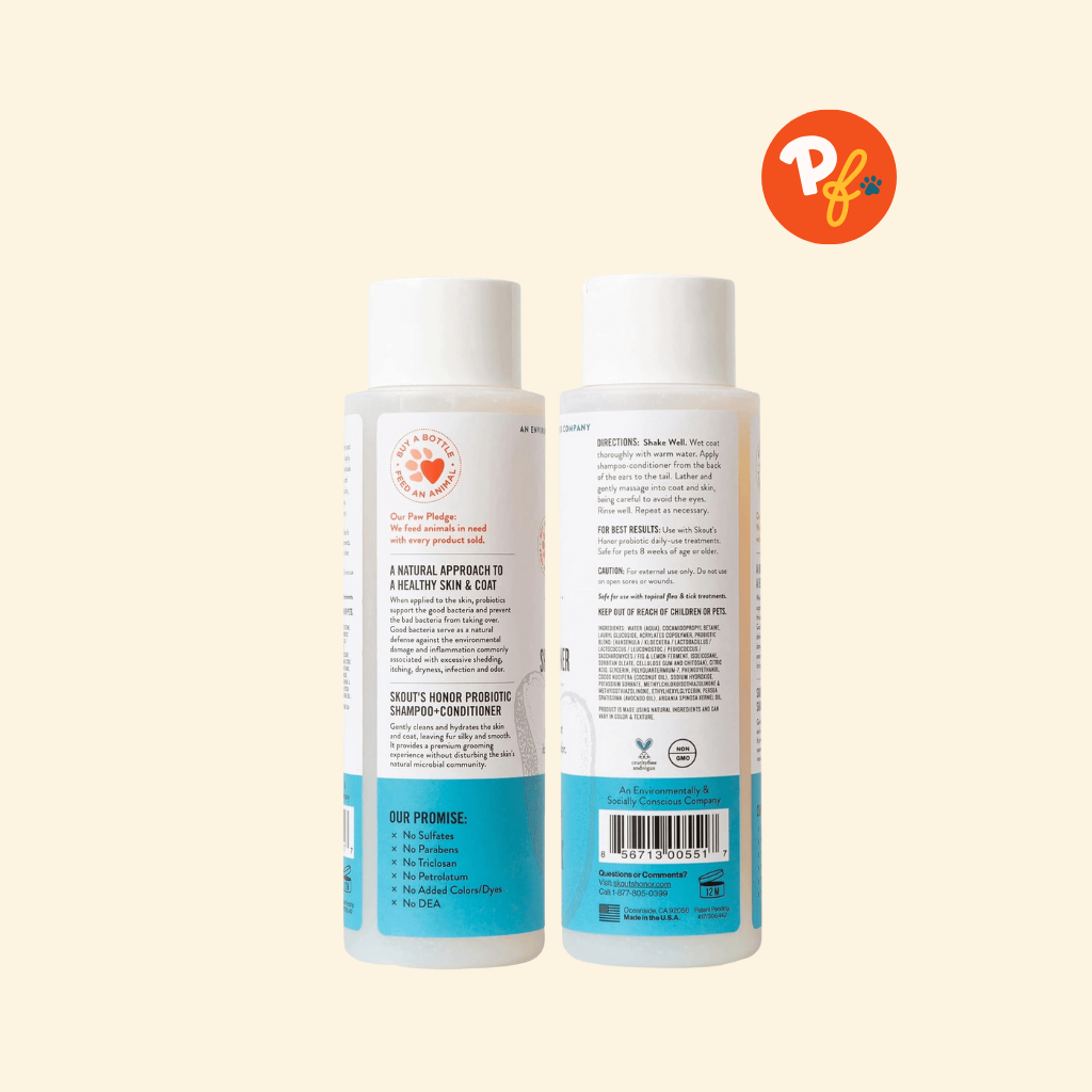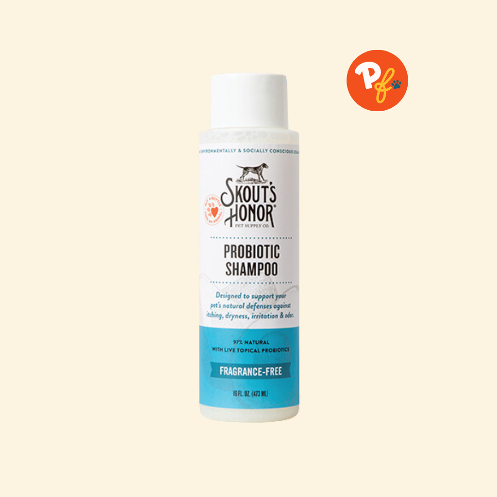 Skout's Honor Probiotic Pet Shampoo gently cleans and moisturizes the skin + coat and is great for not only healthy pets but also pets who suffer from skin allergies.